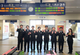 JR赤間駅・東郷駅が2月12日、電車の到着時刻や行き先を示す案内掲示装置「発車標」に学生応援メッセージを表示する取り組みを行った。