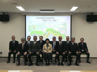 宗像市が3月25日、宗像市役所(宗像市東郷1)で官民連携による次世代型住宅団地再生「宗像モデル」の新プロジェクト発表会を行った。