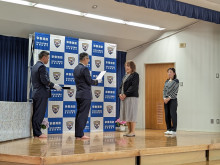 東郷信愛幼稚園(宗像市田熊5)で4月22日、「むなかた・ふくつ幼児教育応急手当優良施設」認定式が行われた。