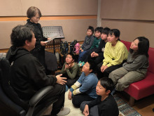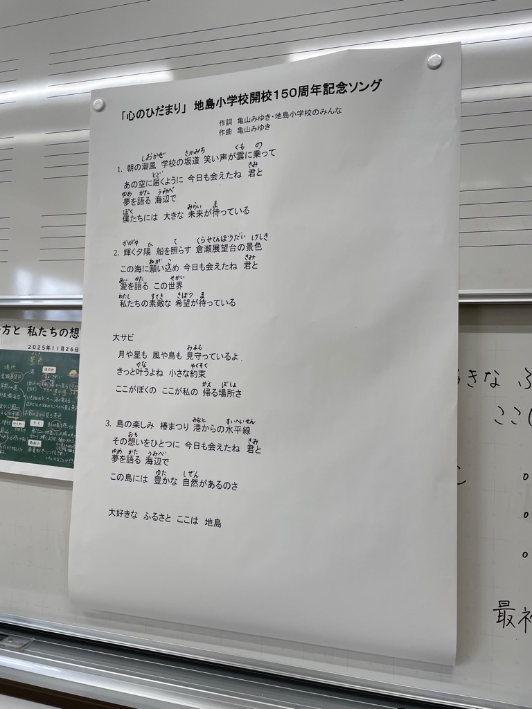 宗像市立地島小学校(宗像市地島)の全校児童8人が2月5日、小学校創立150周年記念ソング「心のひだまり」のレコーディングを行った。