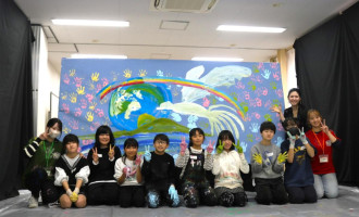 おわりの会ではカラリズムリサさんがアートパフォーマンスで子どもたちにエールを送った