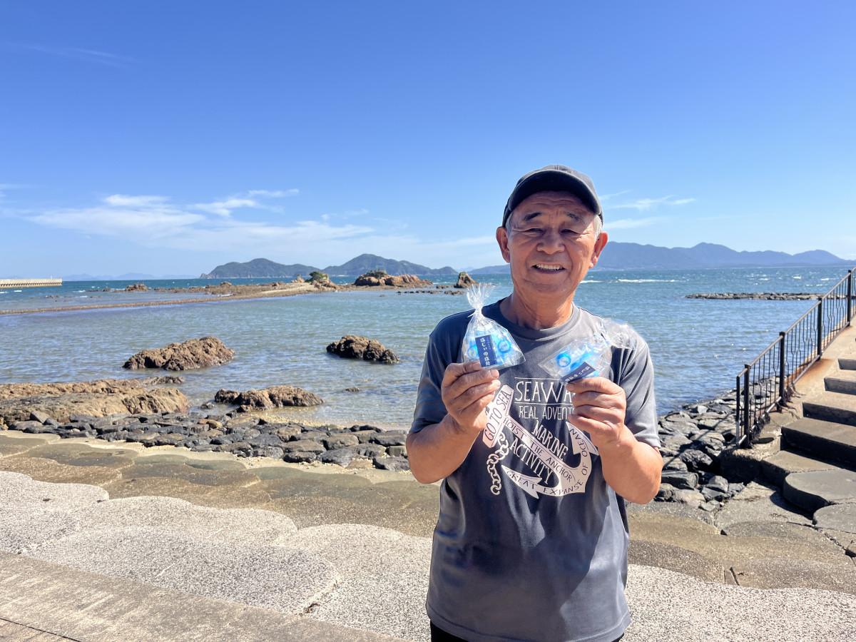 宗像大島の塩を使った商品「塩じぃの塩飴(あめ)」の販売が10月13日、宗像市内で始まった。