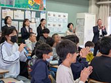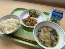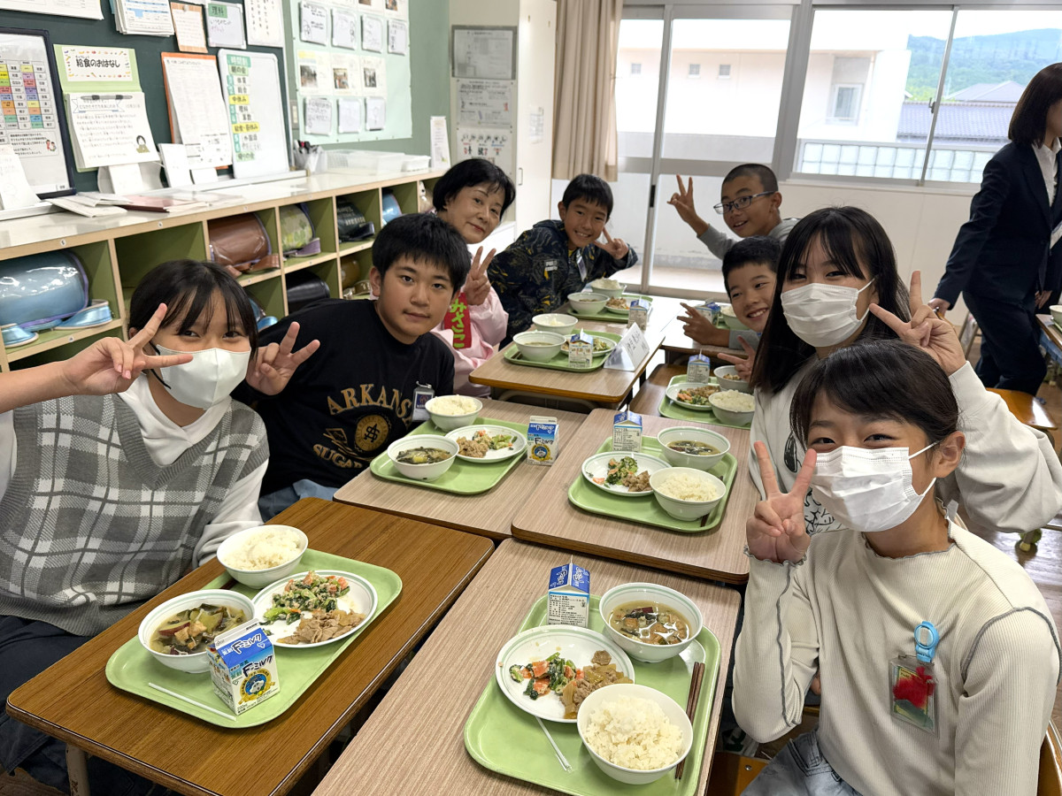 宗像市立自由ヶ丘南小学校(宗像市朝町)で10月31日、自由ヶ丘中学校7年生が考案した給食が提供された。