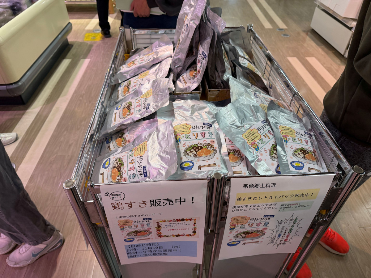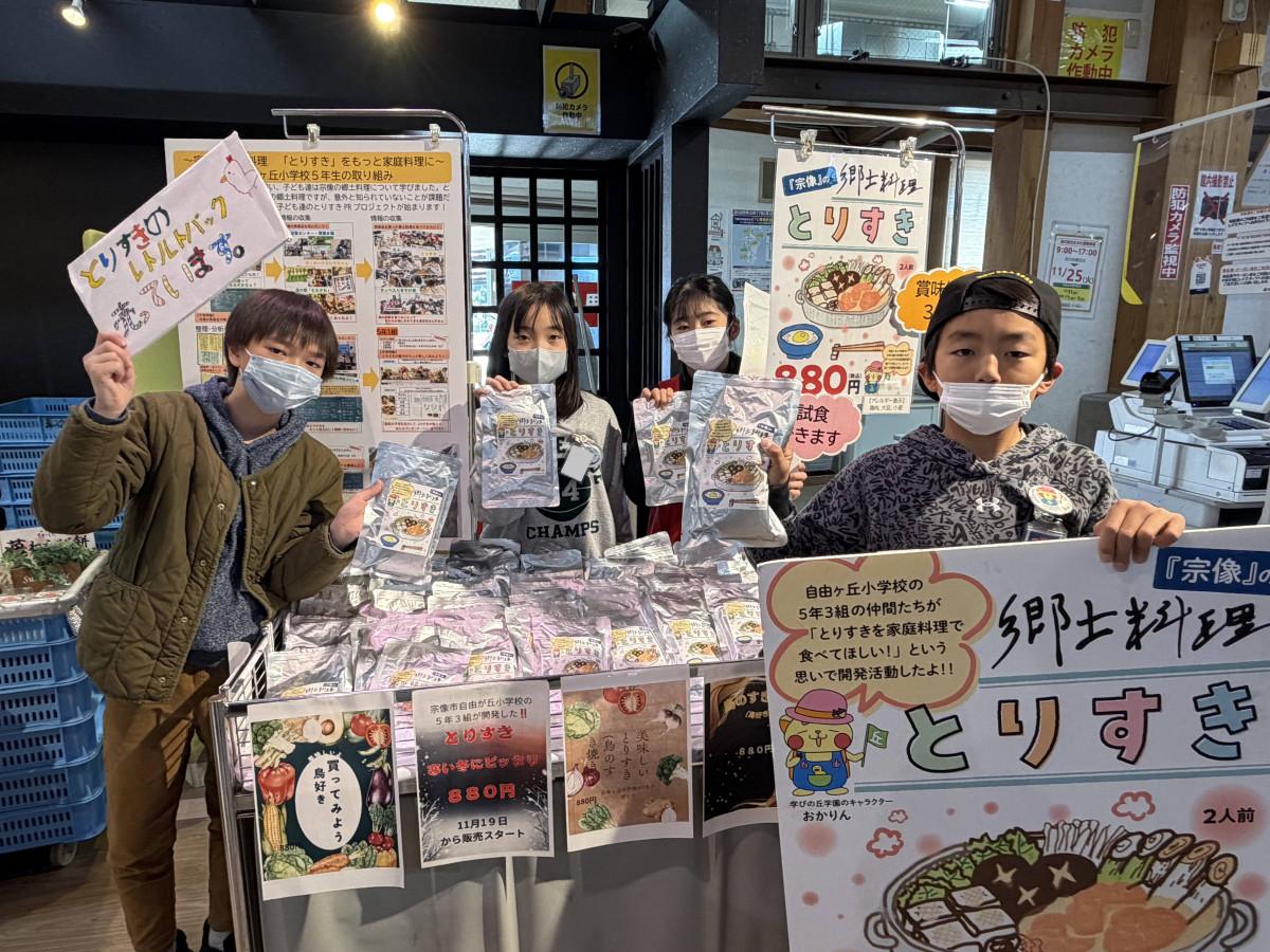 宗像市立自由ヶ丘小学校5年生が開発した商品「レトルトとりすき」の販売が11月19日、道の駅むなかた(宗像市江口)で始まった。