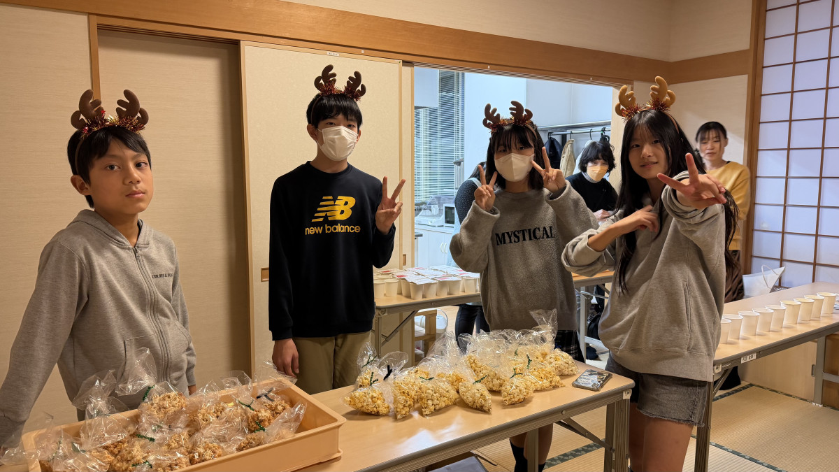休憩時間にホットチョコレートとポップコーンを振る舞う「子どもおとな会議」メンバー