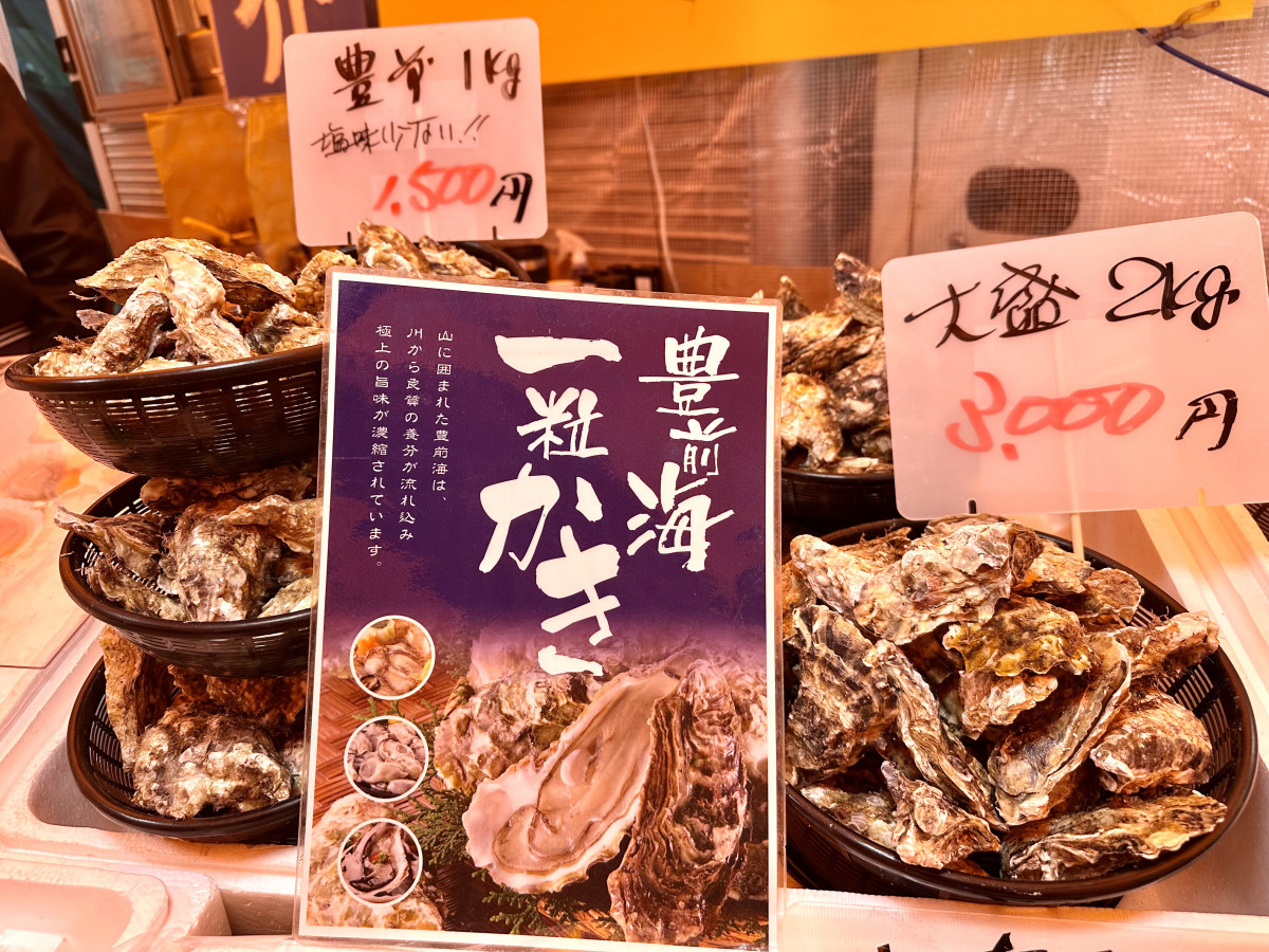 宗像・玄海横丁(宗像市神湊)のカキ小屋が海鮮処「岡八」にオープンして1カ月がたった。