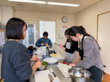 自家製ニンニクを使った加工品を製造販売する「MUNAKATA HIKARI(ムナカタヒカリ)」(宗像市鐘崎)と中村学園大学短期大学部(福岡市城南区)の学生が1月13日、宗像産ニンニクを使った新商品の販売に向け、調理・試食会を行った。