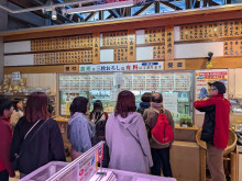 魚さばきコーナーを見学する様子