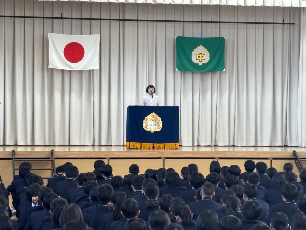 宗像市立城山中学校(宗像市陵厳寺1)で4月7日、約4年にわたる改築工事の完了を祝う「グラウンドオープンセレモニー」が行われた。
