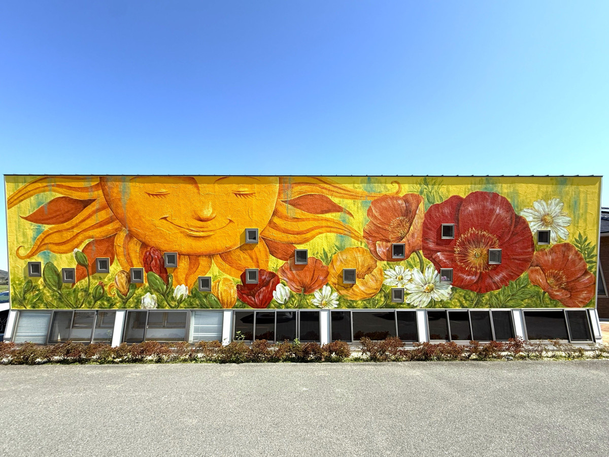 宗像・稲元の医療機関「片山医院」(宗像市稲元)が運営する病児保育室「めばえ」の壁画が4月3日に完成した。