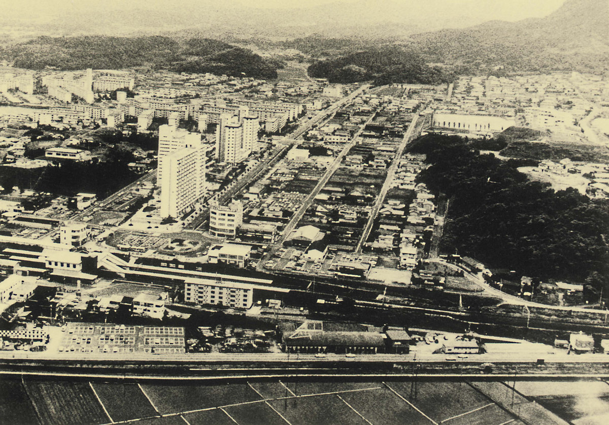 丘陵地だった日の里地区が住宅地として竣工されたのは1971年。UR都市機構の前身である日本住宅公団が開発を手がけ、当時、九州で2番目、福岡県下最大級のニュータウンとして注目を集めました。まちびらきのシンボルとなったのはJR東郷駅へ続く直線約1300メートルの「日の里大通り」です。この通り沿いに高層アパートが建設され、戸建てが立ち並び、商店が軒を連ね、賑わいある日の里を形作っていきました。