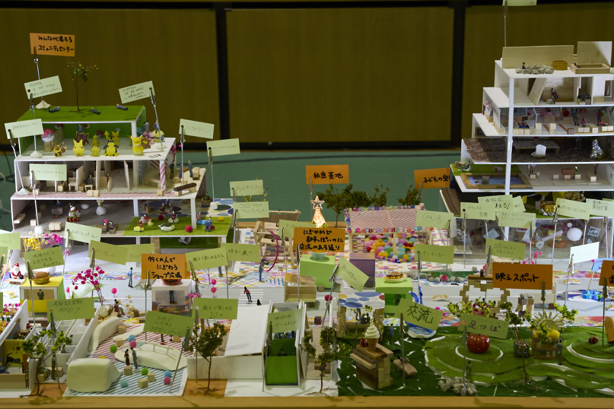 日の里学園8年生が作成した「未来の日の里大通り」の模型