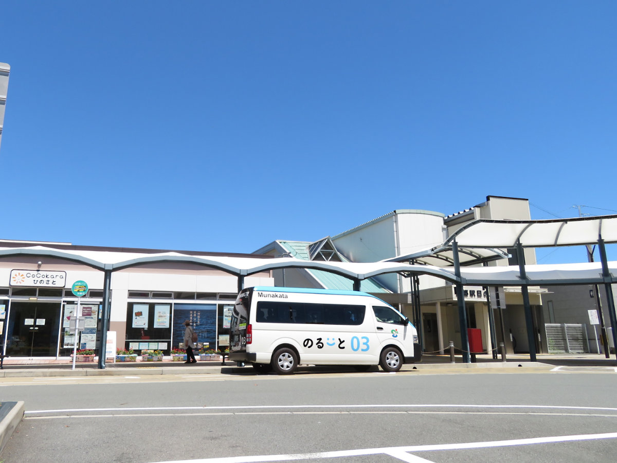 東郷駅前に停まるオンデマンドバス「のるーと」